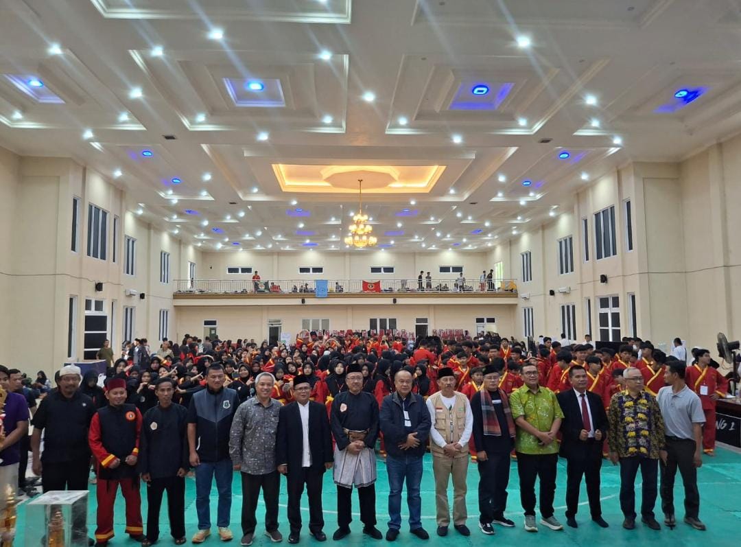 The opening ceremony took place solemnly and energetically at the UNMA Banten Multipurpose Hall, Pandeglang. Attending on behalf of the Governor of Banten was Assistant Regional Secretary II of Banten Province, E. Deni Hermawan, M.Si, accompanied by Secretary General of the Mathla’ul Anwar Central Board, Drs. H. Moh. Babay Sujawandi, and Rector of UNMA Banten, Prof. Dr. Andriansyah, M.Si, along with vice rectors I, II, and III. Also present were members of the UNMA Banten University Management Board (BPU), the Chairman of IPSI Banten, and representatives from various martial arts schools (paguron) across Pandeglang Regency, including Tapak Suci (Amenda), Maung Pande (Dr. Furqon), SMI (Rosad), PSHT (Sumarli), and Putra Kusuma (Iwan).
